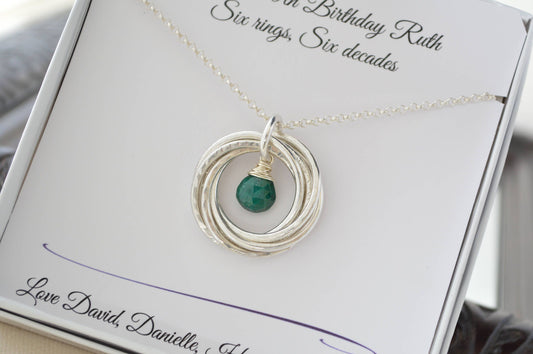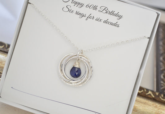 60th Birthday jewelry for mom, 6th Anniversary gift for her, 60 Birthday gift for women, 6 rings for 6 decades, 60th Birthday necklace