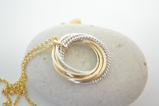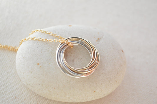 60th Birthday jewelry for women, 6th Anniversary gif for her, 6 Rings necklace, 60th Birthday gifts for mom, 6 Decade jewelry, Mixed metal