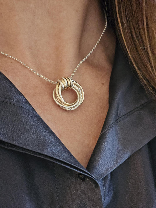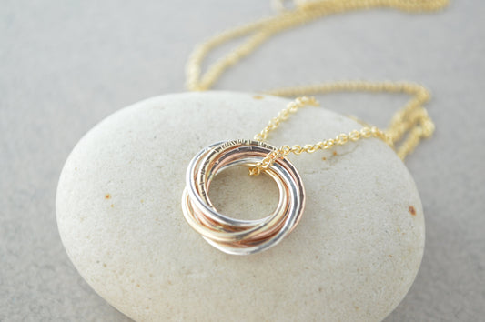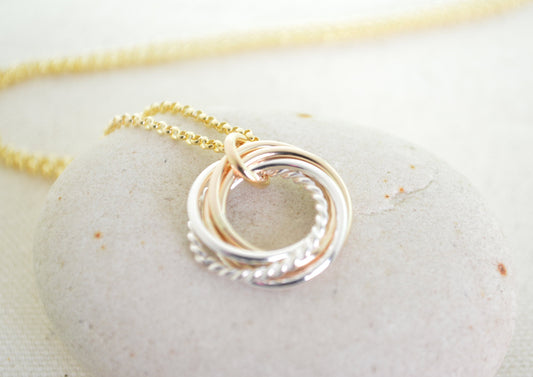 60th Birthday jewelry for mom, Mixed metals necklace, Rose gold necklace, 60th Birthday gift for women, 6 Rings for 6 decades necklace