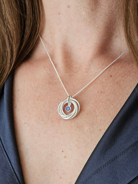 60th Birthday necklace for mom, December birthstone, Blue topaz quartz, 6th Anniversary, 60th Birthday for women,6 Rings 6 decades,milestone
